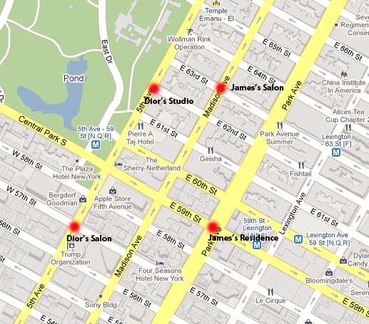 Figure 3: Map showing business and personal locations of Dior and James, Midtown, New York