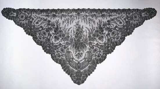 Figure 4. Unknown maker, Black Lace Shawl, silk bobbin lace, 142.5 X 290 cm, 1860-1870, Victoria &Albert Museum, London.