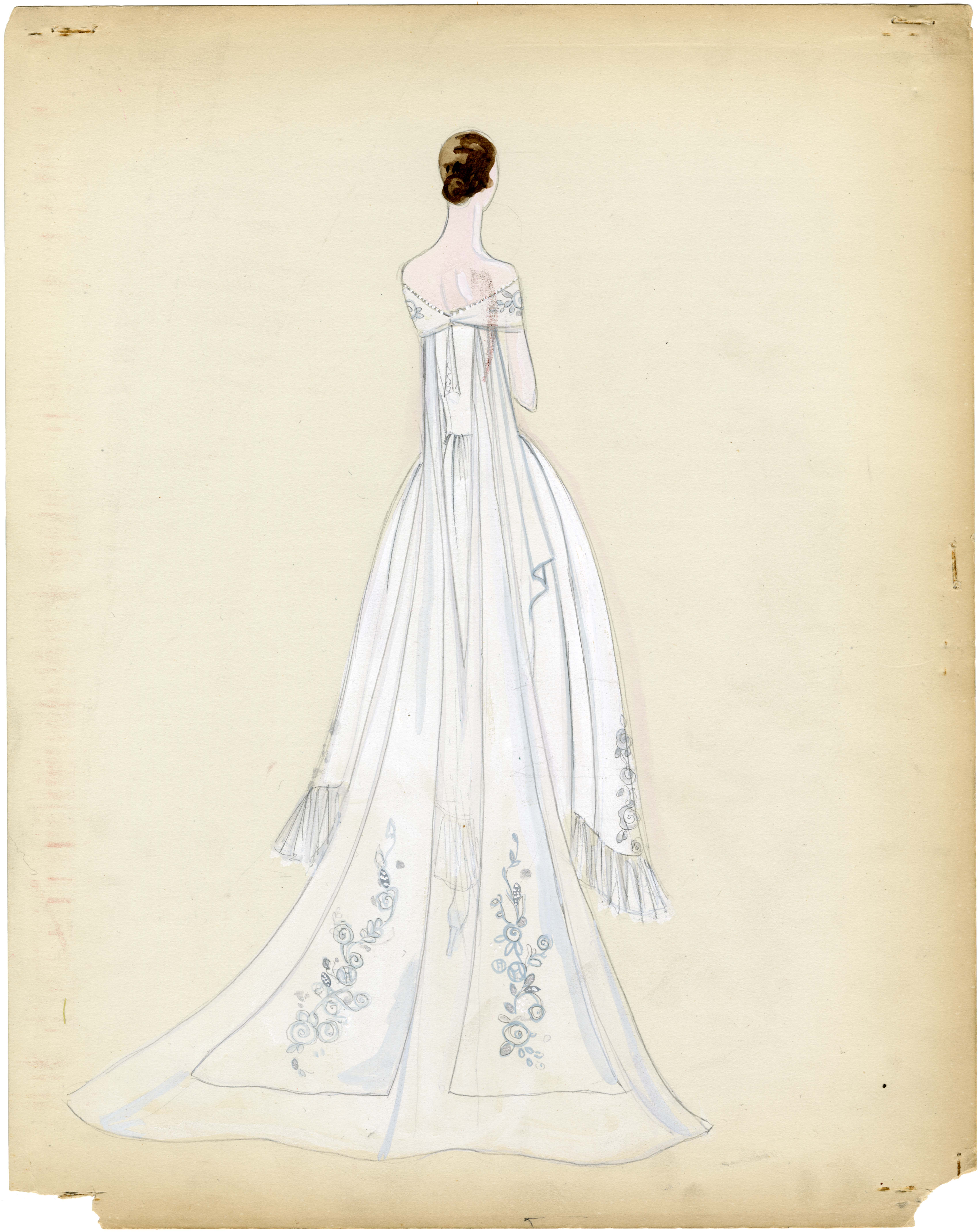 These digital prints are reproductions of original sketches of wedding dresses from the 1920s housed in the Lucile, Lady Duff Gordon collection in the Department of Special Collections and FIT Archives. The collection was arranged and described by Ashley O’Brien in the summer of 2010. It is comprised by approximately 11 linear feet of sketches, photographs, scrapbooks, and clippings.