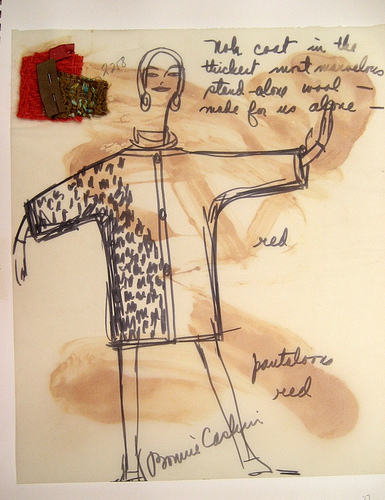Bonnie Cashin, born in Fresno, California in 1908, had a very successful costume and clothing design career spanning sixty years. Cashin began designing for herself at an early age, working as an ‘apprentice’ for her mother Eunice, a custom dressmaker and dress shop owner. Moving back and forth from California and New York, she had designed for dance companies, film in Hollywood, uniforms for the WWII effort and ready-to-wear. By the time Cashin left Hollywood and came back to New York in 1949, she had been designing for over twenty years.