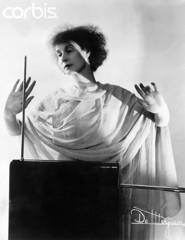 Lucie Bigelow Rosen playing the Theremin. Pitch is controlled by hand movements.ca. 1920s. Image by © Bettmann/CORBIS