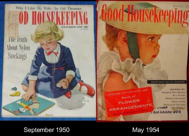Magazines, however, had the strongest influence at the inception of the 1950s shirtwaist style, just after World War II.  Historian and documentary filmmaker David Halberstam explains, “Women turned to magazines to learn how to adapt to their new roles in the land of plenty.” Good Housekeeping was a practical lifestyle magazine that women utilized to inform and influence their fashion decisions. Good Housekeeping’s position and reputation sold women the 1950s shirtwaist and the idealized figure it came to represent.  Tracing the path of the shirtwaist—from its pre-war form, to the 1947 New Look revision by Haute Couture designer Christian Dior, to its gradual appearance in this new form in Good Housekeeping—shows the beginnings of its development as an icon.  Its presentation in both magazines and other media caused the style to permanently represent idealized motherhood and domesticity in the American mind.