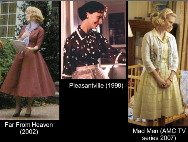Today’s period films typically show the 1950s housewife in the uniform of her profession: a shirtwaist dress.  The shirtwaist itself encompasses the 1950s ideal of conformity and domesticity with a variety of media reinforcing these notions over time.  In the 1950s magazines, television, books, and films all had varying degrees of influence over women’s fashion choices.