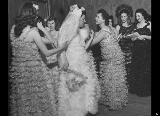 Of course, in a nod to the extreme, sometimes turkey feathers are used to construct entire garments. In November of 1947, Barbara Ehrhart crafted her wedding gown, as well as the dresses for her bridesmaids, entirely out of turkey feathers, in line with the Thanksgiving theme of her nuptials.