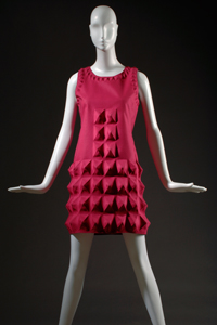 Pierre Cardin, dress, fuchsia “Cardine” textile with molded 3D shapes, 1968, USA, gift of Lauren Bacall.