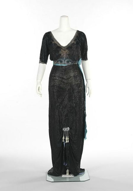 Doeuillet, Georges. Evening dress with black net, blue satin and taffeta moiré and ornamentation, 1910 – 1913. Copyright the Metropolitan Museum of Art.