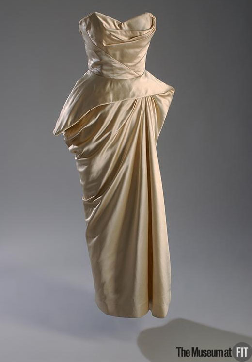 James, Charles. Ivory silk satin evening dress with boning, c. 1952. From The Museum at FIT, object number 70.1.1.