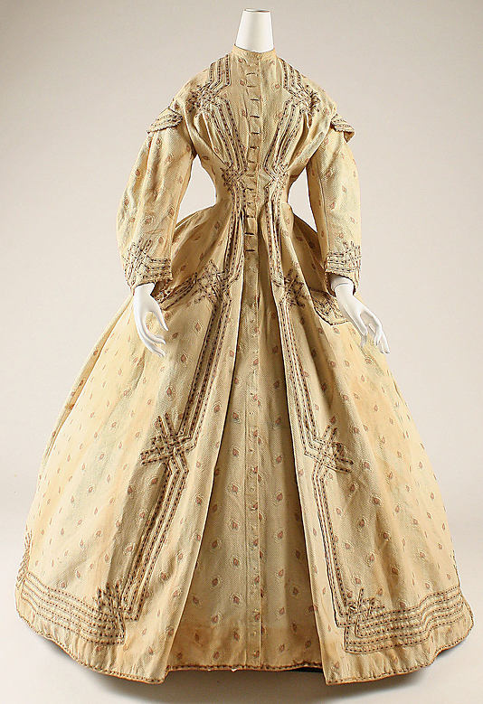 Fashionable, even at home. The fabric and trim of this dressing gown are so fine it appears to be more than just leisure wear. Dressing gown, ca. 1860. Metropolitan Museum of Art.