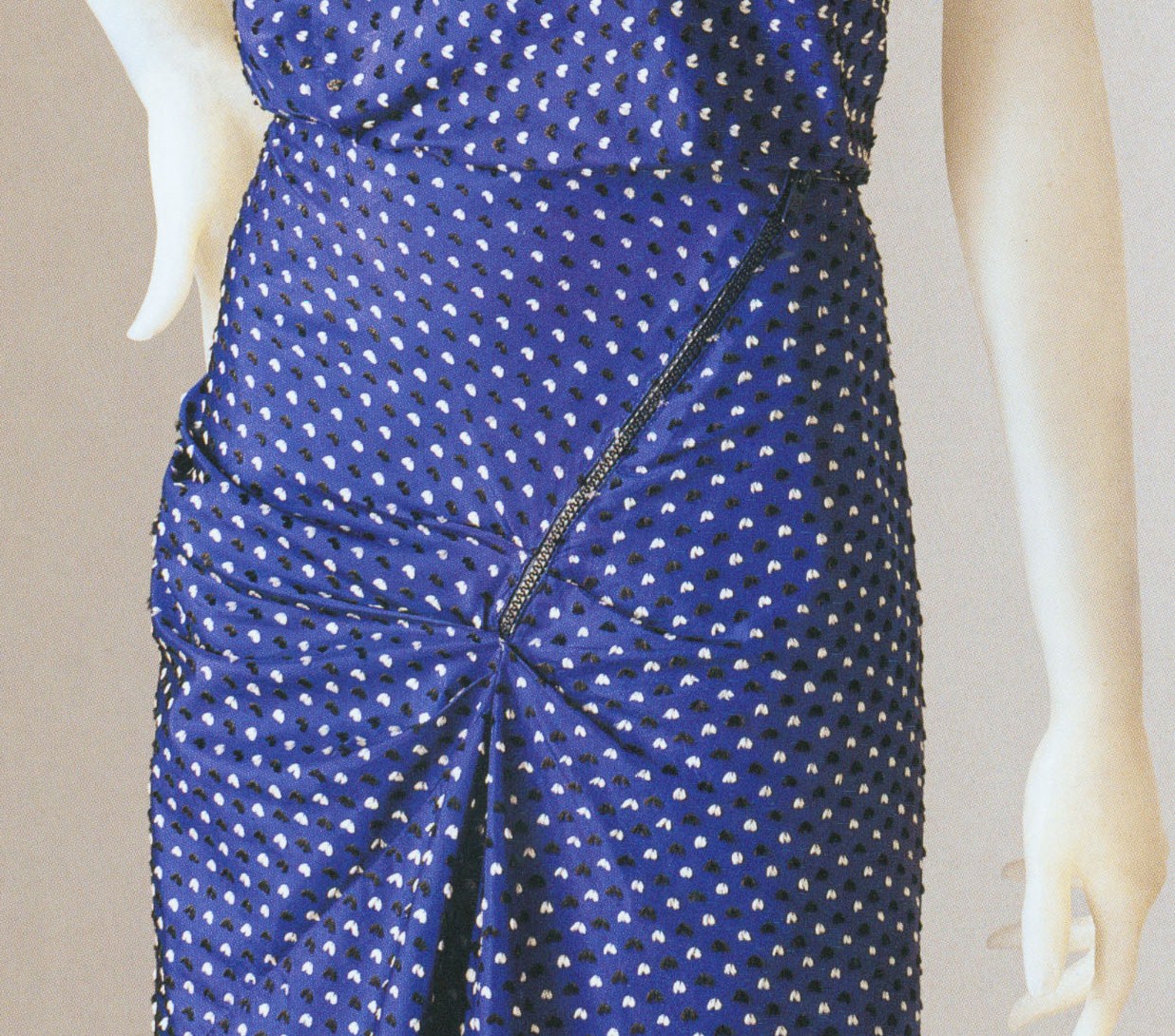 Looking at her blue taffeta dress alongside this punk t-shit, probably designed by Vivienne Westwood, it becomes clear that the playfulness of the zipper can just as easily morph into a more threatening statement referring to the Venus fly trap or even the vagina dentate in the case of Schiaparelli’s dress.