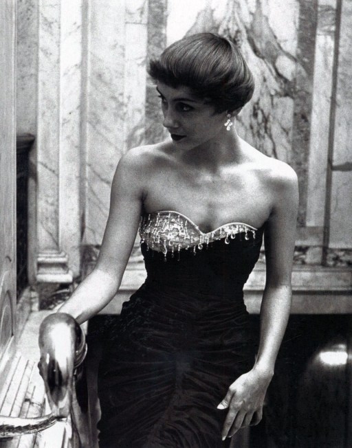Nina Lean, Model Shari Herbert wearing Schiaparelli’s “Forbidden Fruit” evening gown, in Time, October 10, 1949