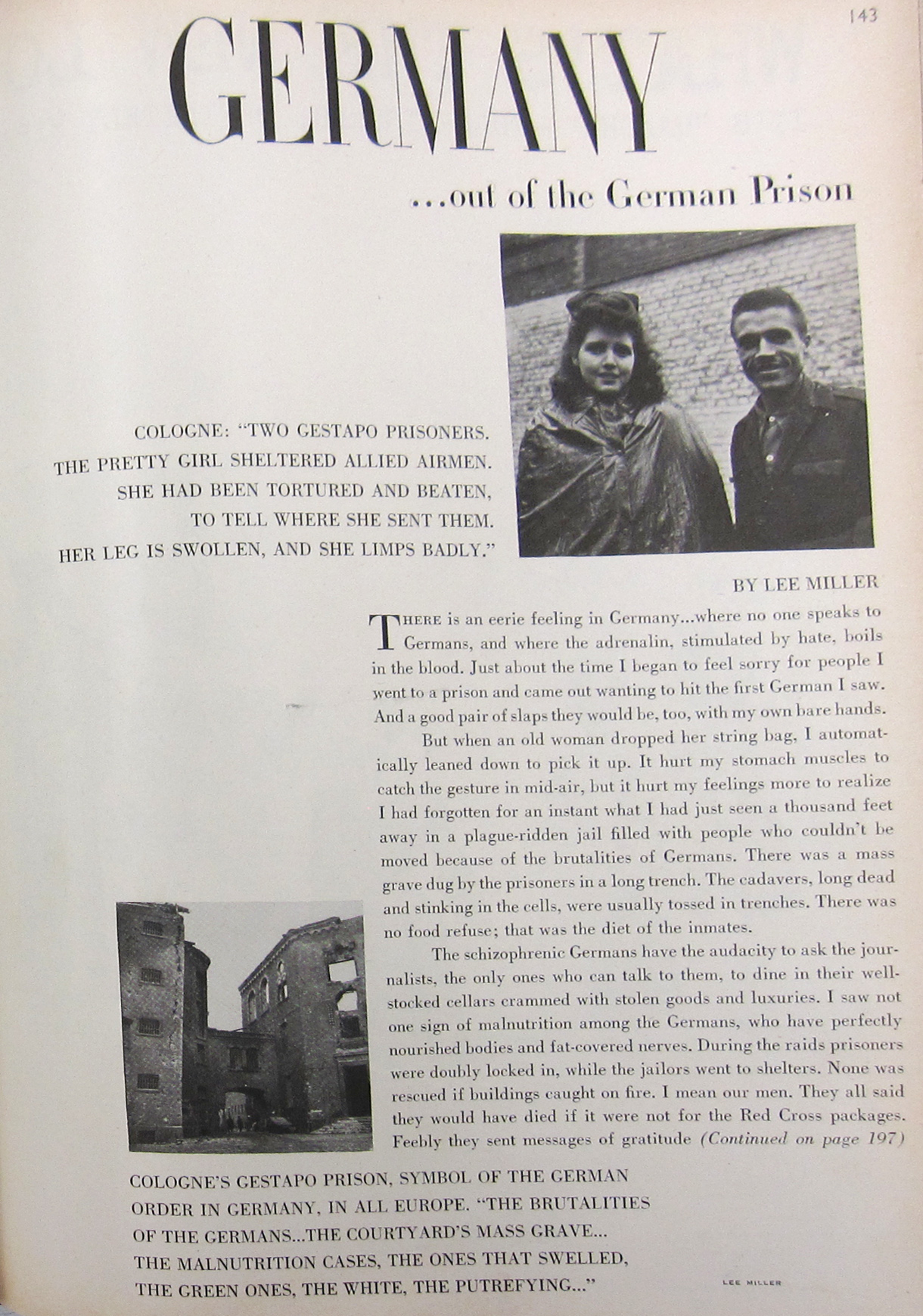 Lee Miller’s report from Germany, scanned from American Vogue, June 1945, p. 143-44