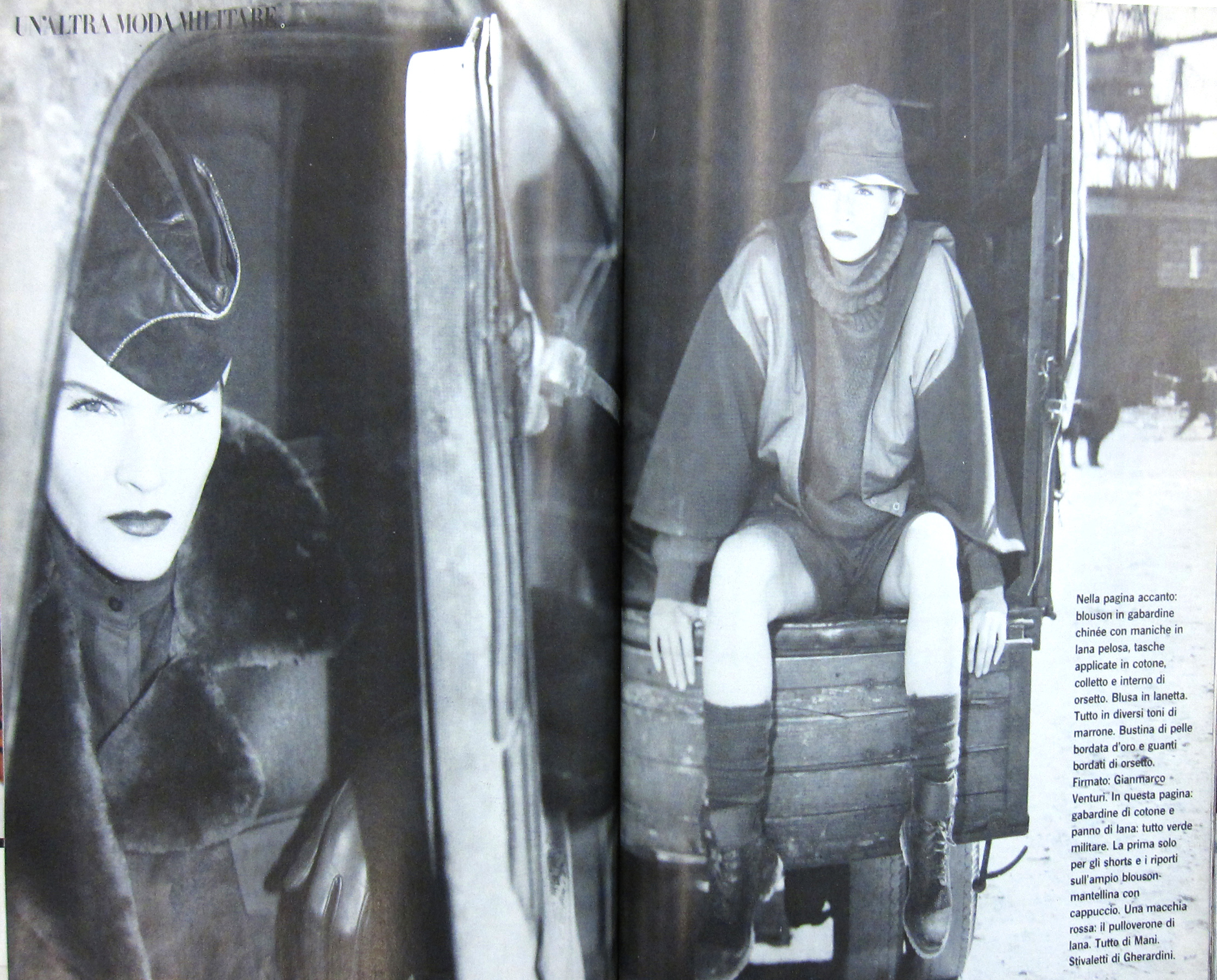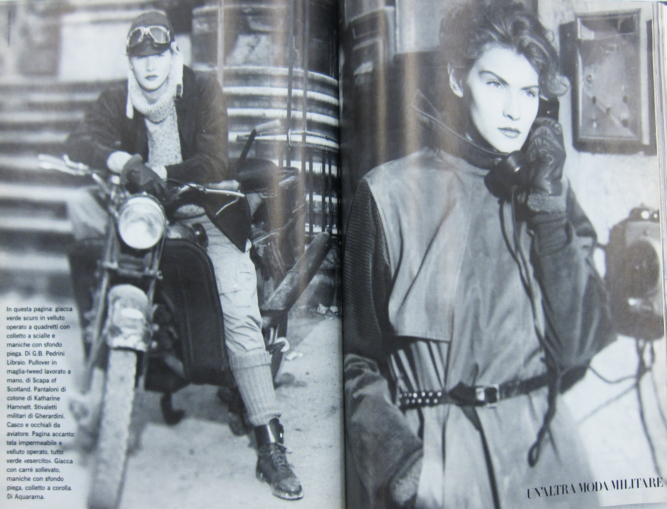 “Un’altra Moda Militare” fashion editorial, scanned from Vogue Italia, September 1982.