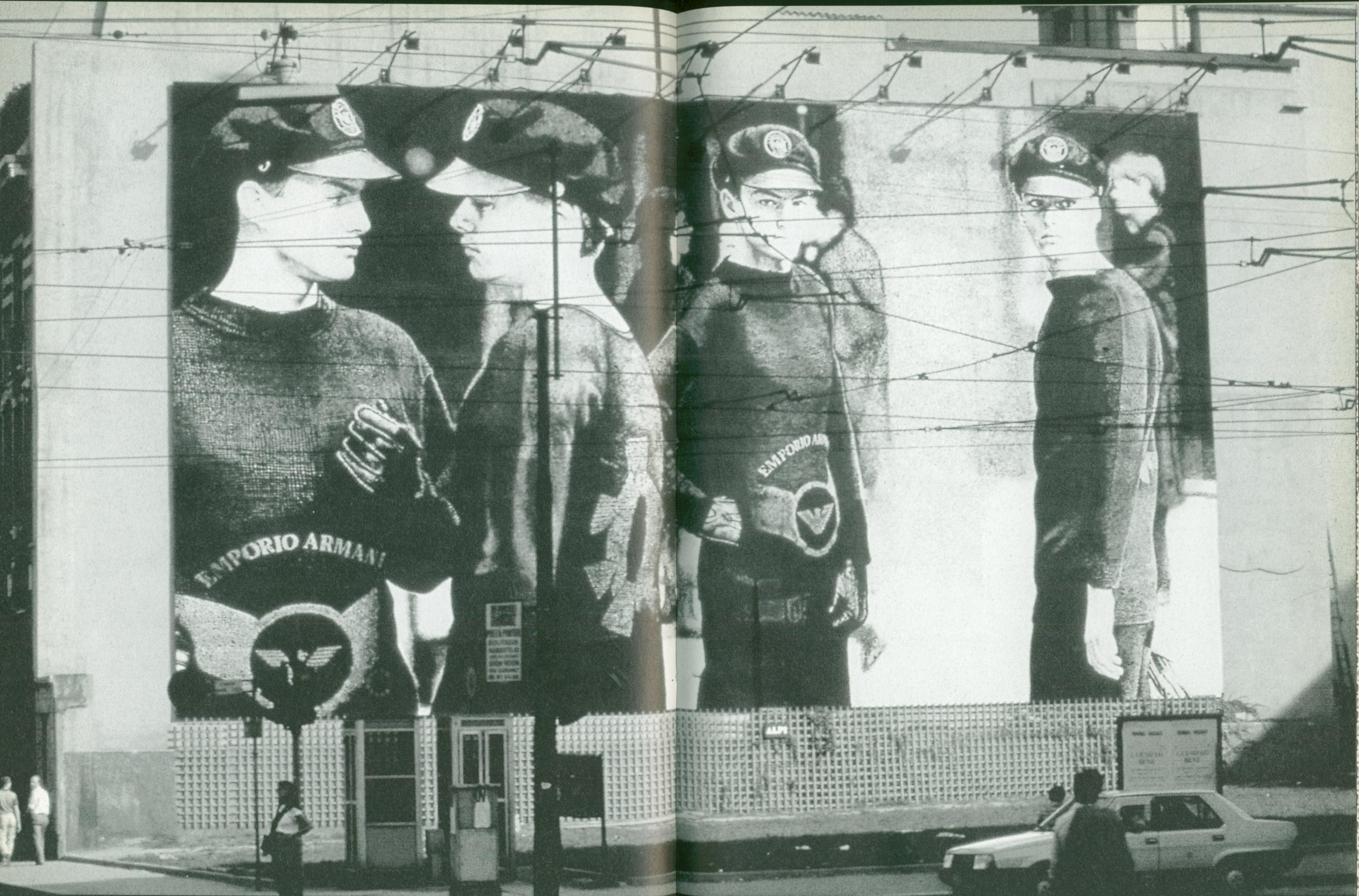 Emporio Armani billboard, autumn/winter 1985/1986. Scanned from the book Uniform: Order and Disorder [Milano: Charta, c2000], 310-311