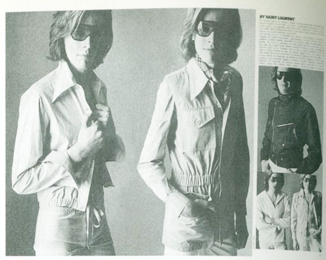 “YSL- La Shariana: un classico,” in L’Uomo Vogue, n.29, April 1974, p.197. Photo Richard Imrie, scanned from the book Uniform: Order and Disorder [Milano: Charta, c2000], 338.