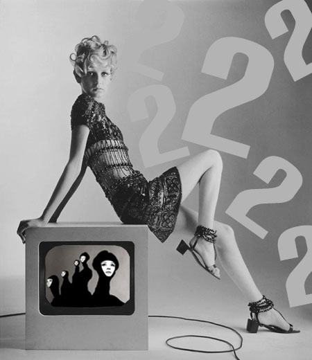 Fashion often takes inspiration from ideas previously explored in painting and graphic art. The impasto brushstrokes of Impressionism, the linear symmetry of Art Deco, the optical illusions of Op Art are all part of a graphic vocabulary that constantly reenters fashion. Since fashion designers create in a three dimensional medium, they can further experiment with these visual means. In fashion, the body rather than the fabric is the surface, the canvas for a creation. The dimensionality of the body is used by fashion designers to emphasize the graphic intensity of black and white.