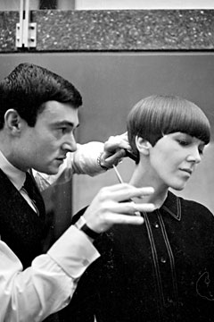 Mary Quant gets a touch-up from Vidal Sassoon in November 1964. source:style.com