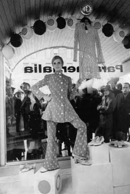 CZ: This idea of new, unorthodox materials being introduced into fashion was something that was an innovation of these young youthquake designers. You are seeing all these concepts that are originating with this new generation of young designers who were coming straight from art colleges, and fashion design schools and bypassing traditional apprenticeship programs and opening their own businesses, they have small overheads, inexpensive shops to rent, so they are proving to be breeding grounds for innovation. You have all these radical new styles, like mini skirts and pant suits for women, as well as these introduction of unorthodox materials in fashion. We were very fortunate to interview Betsy Johnson who started her career at 21, she was hired as in-store designer for New York’s groundbreaking Paraphernalia boutique. She really is known for her innovative use of material, using plastics and metals. She says that this was the most exciting time of her work life.