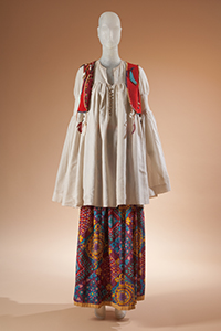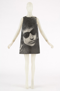 Dress with photograph of Bob Dylan by Harry Gordon, paper, black ink, 1968, England, gift of Estelle Ellis, Museum at FIT.