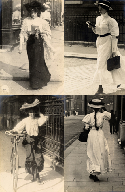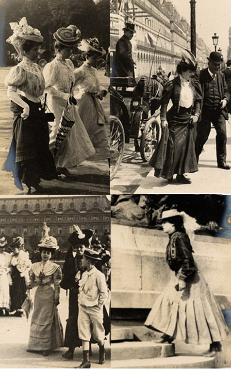 Street-style photography from the turn of the twentieth century tells a truer story about how clothes were worn than can be discovered by looking at studio portraits from the same period. Fashion was captured by artists and hobby photographers, as well as professionals like Edmond Cordonnier or the Seéberger brothers who were paid to capture society women dressed in the newest and most exciting styles for fashion magazines. The most telling photographs, however, are the ones that were taken secretively on the streets, without the subjects knowing they were being photographed, making them look relaxed, more casual, and as a result, not unlike women photographed by Bill Cunningham today.